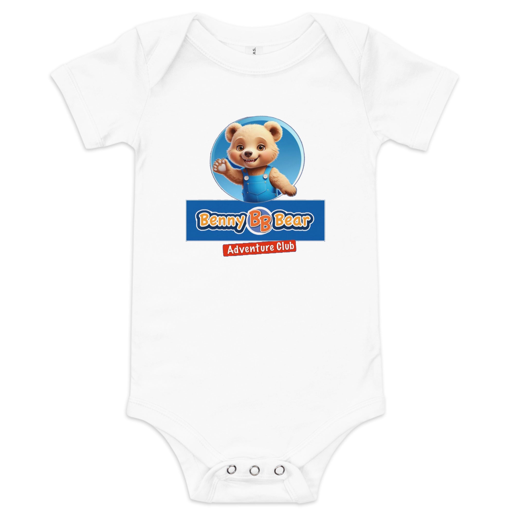 Dress your baby to the nines with this 100% cotton one piece. It has three snap leg closure for easy changing, a comfortable envelope neckline, and a beautiful Benny Bear® print that's bound to get the baby all happy and giggling.